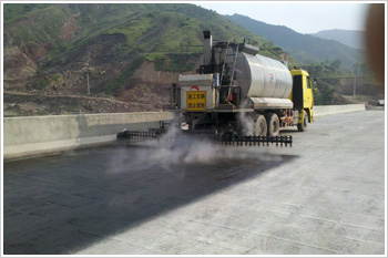 (4)防水層做完后,在瀝青混凝土鋪裝層未上以前要嚴(yán)加保護(hù),防水層實(shí)干后,可在其上開行10t以下汽車,但不得在其上打彎,倒車,急剎車等。10t以上的貨車,鏟車、吊車等禁止通行。