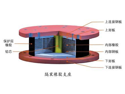 鉛芯支座屬于隔震支座。是在普通疊層橡膠支座的中心插入鉛芯,以改善橡膠支座阻尼性能。鉛芯支座除能承受結(jié)構(gòu)物的重力和水平力外,鉛芯產(chǎn)生的滯后阻尼的塑性變形還能吸收能量,并可通過橡膠提供水平恢復(fù)力。由上連接板 上封板、鉛芯、多層橡膠、加勁鋼板 、保護層橡膠、下封板和下連接板組成。多層橡膠、加勁鋼板構(gòu)成多層橡膠支座承擔建筑物重量和水平位移的功能,鉛芯在多層橡膠支座剪切變形時,靠塑性變形吸收能量,地震后,鉛芯又通過動態(tài)恢復(fù)與再結(jié)晶過程,以及橡膠的剪切拉力的作用,建筑物自動恢復(fù)原位。對應(yīng)不同鉛芯、橋梁的要求,隔震橡膠支座可以有不同的疊層結(jié)構(gòu)、制造工藝和配方設(shè)計,以滿足所需要的垂直鋼度、側(cè)向變形、阻尼、耐久性、傾覆提離等性能要求。